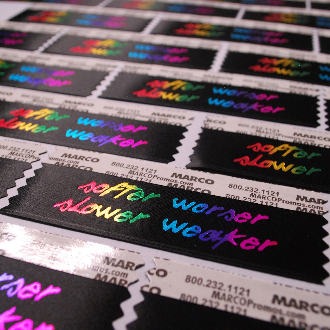 ✷ Metallic Rainbow Imprinted on Pink Satin